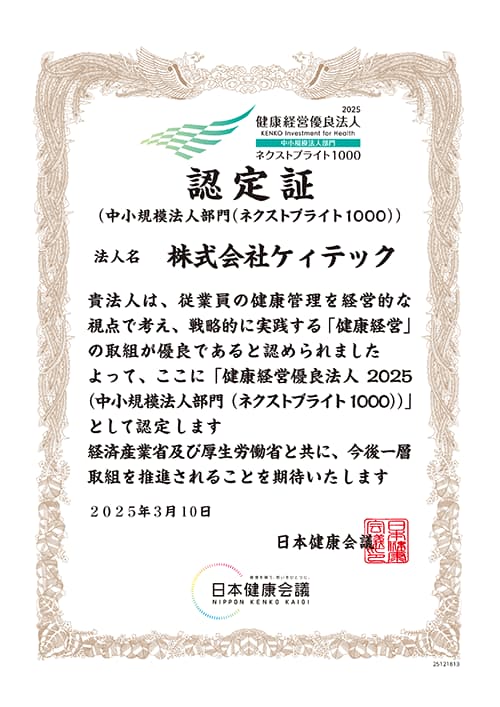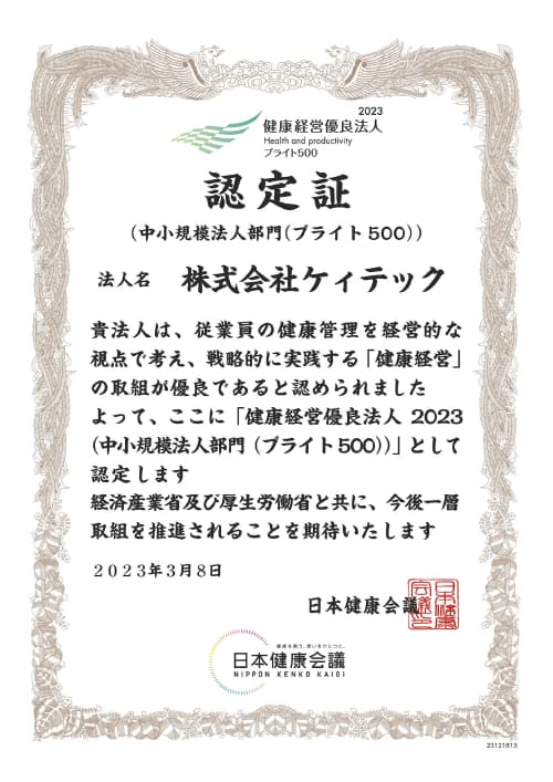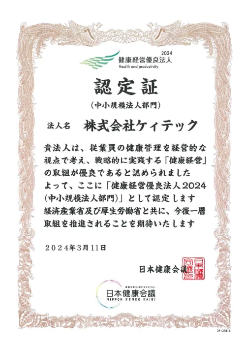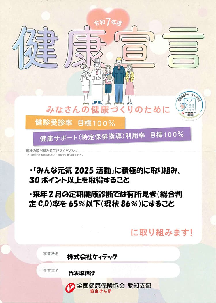 弊社では2021年7月に「株式会社ケィテック SDGs宣言」を行い、その宣言の中に「働きやすさ・人材育成」のカテゴリー中「健康経営」を盛り込みました。