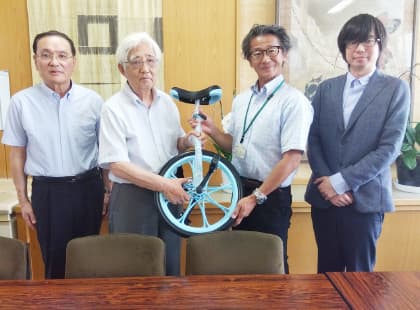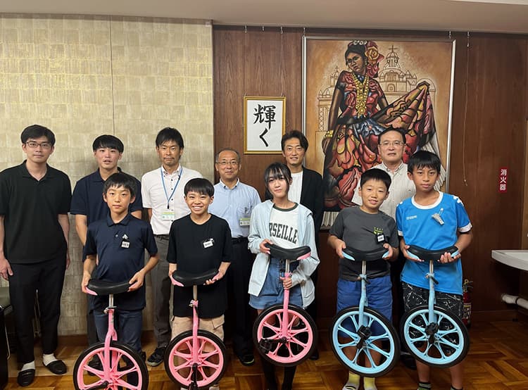 有松小学校へ子どもたちの健康維持増進のため、一輪車5台を寄贈。