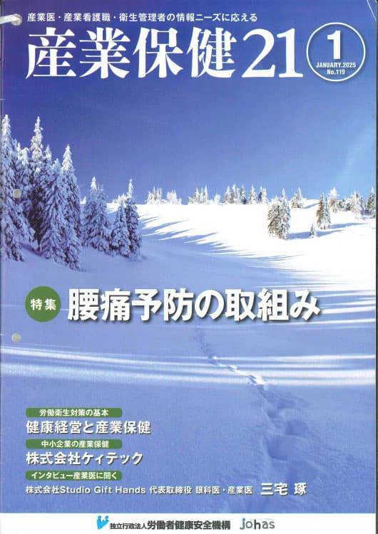 産業保健情報を提供することを目的として、独立行政法人 労働者健康安全機構が発行している『産業保健21』の1月号(P22)に当社の健康経営が紹介された。