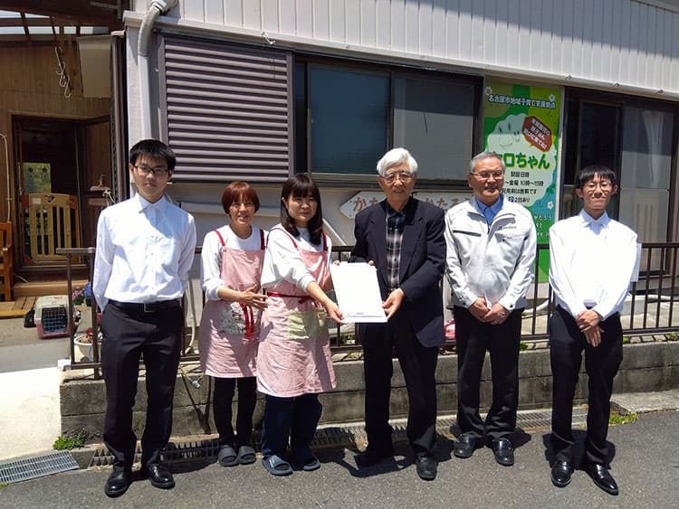 子ども食堂(ワークハウス/名古屋市緑区曽根)に出向き、食材等購入のための寄付を実施。参加者は社員5名。