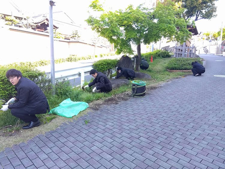 社員の健康維持を兼ねて鳴海本町交差点北側にある復元高札場の清掃作業を三菱UFJ銀行と合同で実施。