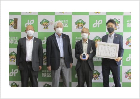 名古屋市緑区役所にて区長感謝状贈呈式を行いました。緑区役所の1階の市民課や緑区役所徳重支所に設置。